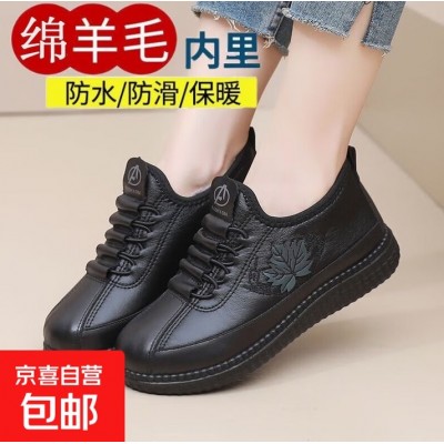 冬季妈妈鞋老人棉鞋软底中老年短靴女加绒保暖靴子平底奶奶棉皮鞋