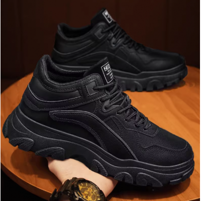 2025新款黑色中帮马丁靴男秋冬工装靴耐磨防滑户外登山鞋男款板鞋