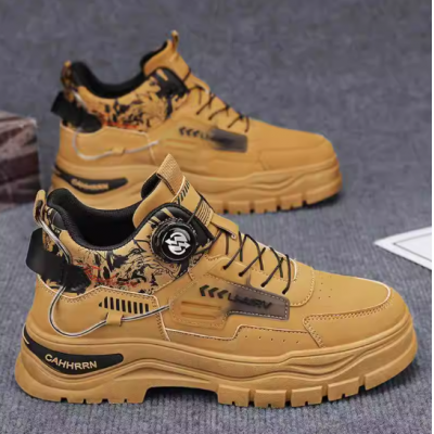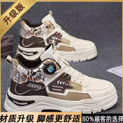 高帮男鞋秋季青少年运动防水耐磨防滑厚底休闲工装旋转纽扣马丁靴