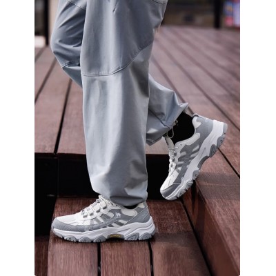 鸿星尔克男鞋2026新款冬季皮面防水老爹鞋增高厚底休闲鞋官方旗舰店运动鞋 沉静灰/浮岩灰(皮面款)