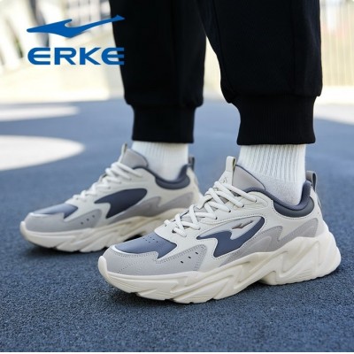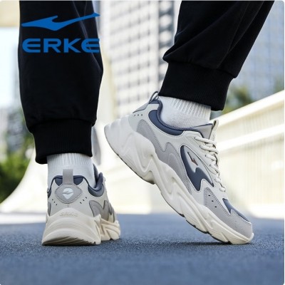 鸿星尔克男鞋2026新款冬季皮面防水老爹鞋增高厚底休闲鞋官方旗舰店运动鞋 沉静灰/浮岩灰(皮面款)