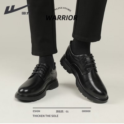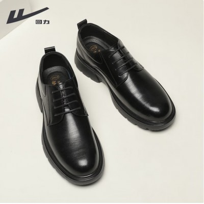 回力皮鞋男黑色英伦风德比鞋厚底耐磨工作鞋软底系带正装鞋男
