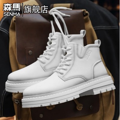 森馬马丁靴男冬季复古英伦风高帮真皮工装鞋百搭休闲运动厚底作战靴子