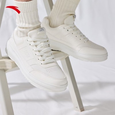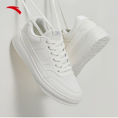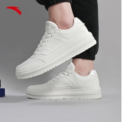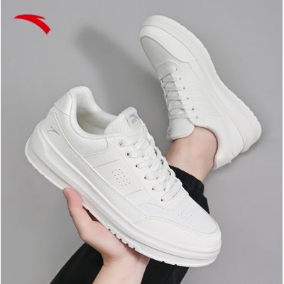 安踏男鞋板鞋小白鞋子男士运动鞋春季皮面防泼水厚底增高减震休闲鞋