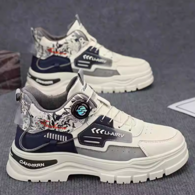 高帮男鞋秋季青少年运动防水耐磨防滑厚底休闲工装旋转纽扣马丁靴