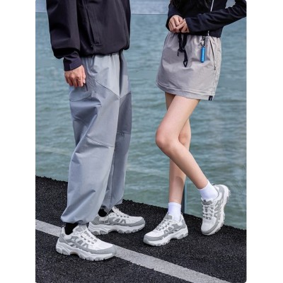 鸿星尔克男鞋2026新款冬季皮面防水老爹鞋增高厚底休闲鞋官方旗舰店运动鞋 沉静灰/浮岩灰(皮面款)