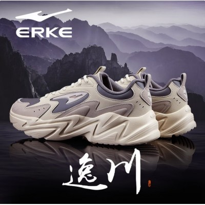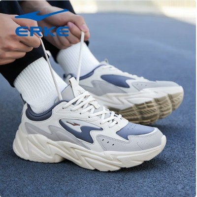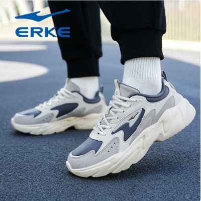 鸿星尔克男鞋2026新款冬季皮面防水老爹鞋增高厚底休闲鞋官方旗舰店运动鞋 沉静灰/浮岩灰(皮面款)