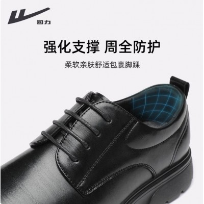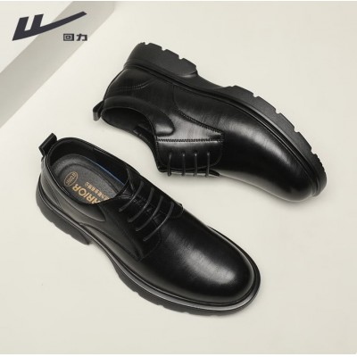 回力皮鞋男黑色英伦风德比鞋厚底耐磨工作鞋软底系带正装鞋男