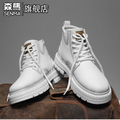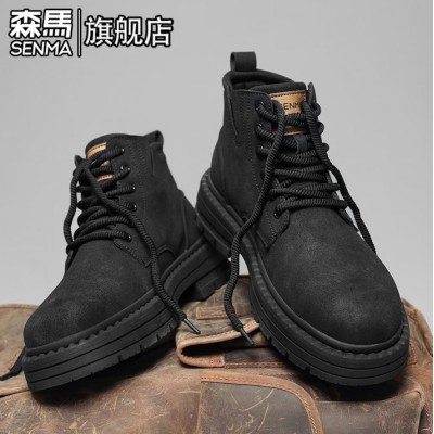 森馬马丁靴男冬季复古英伦风高帮真皮工装鞋百搭休闲运动厚底作战靴子
