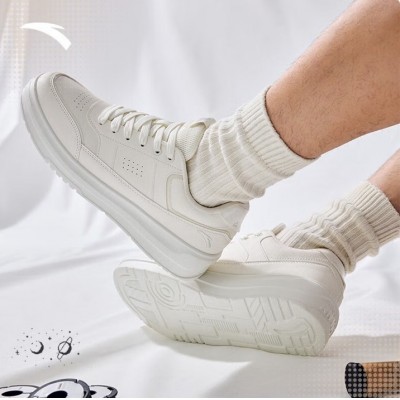 安踏男鞋板鞋小白鞋子男士运动鞋春季皮面防泼水厚底增高减震休闲鞋