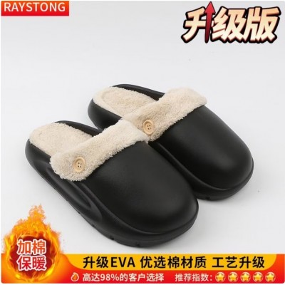 咿靓影防水棉拖鞋男士冬季外穿室内家居2026新款包跟防滑踩屎感棉鞋女士 黑色潮流棉拖*可拆洗