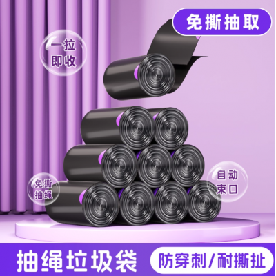 抽绳垃圾袋家用手提式加厚免撕厨房卫生间大号塑料袋子实惠装特厚